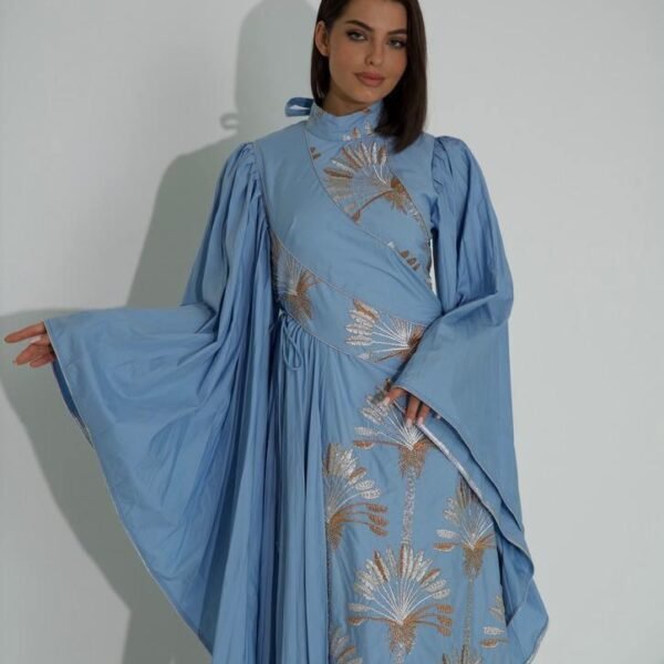 Elevate your wardrobe with the exquisite Blessea kaftan, adorned with stunning beadwork and intricate embroidery on luxurious plain fabric