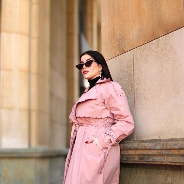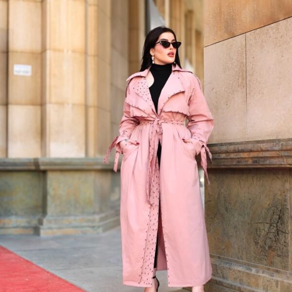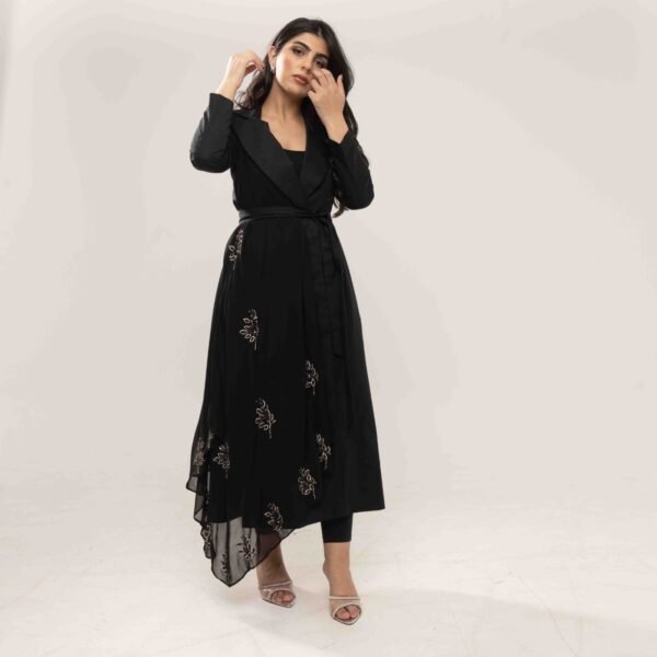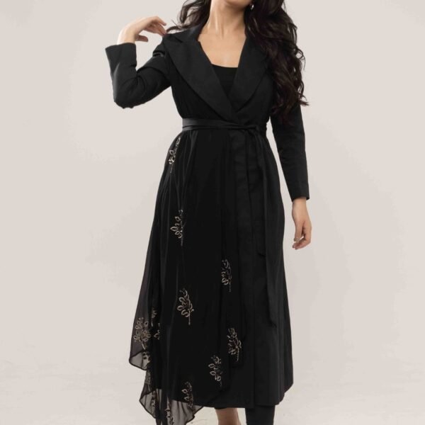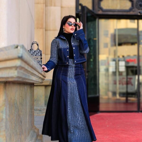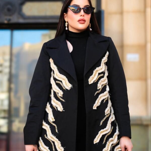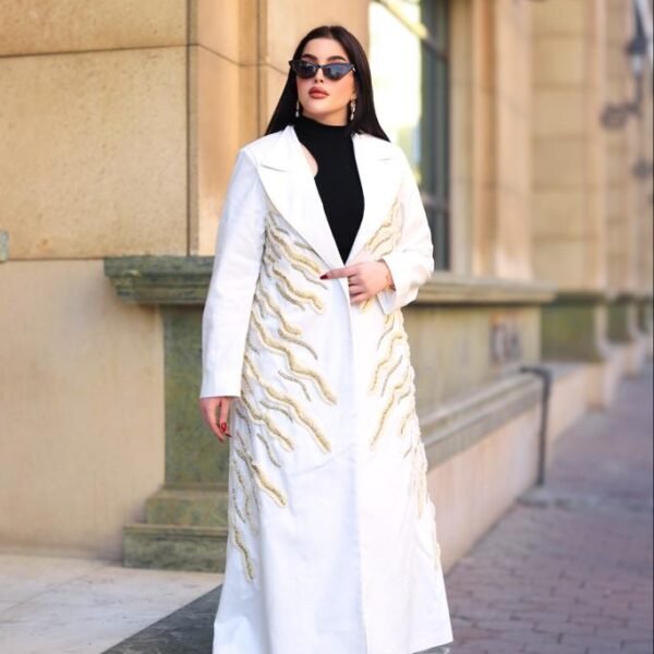 Cotton jeans with chiffon embroidery and hand-embroidered trench jacket