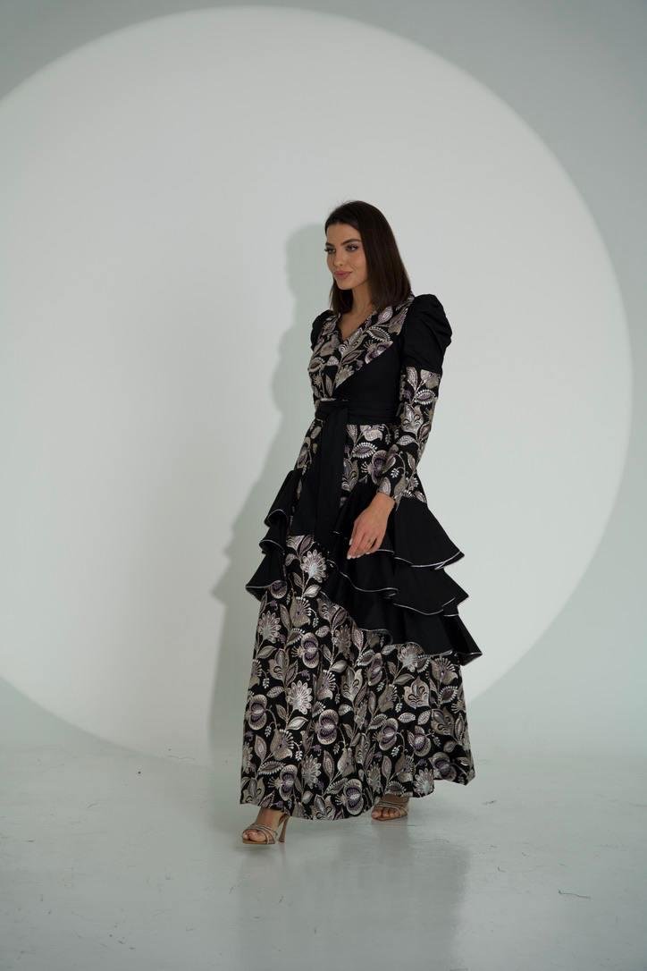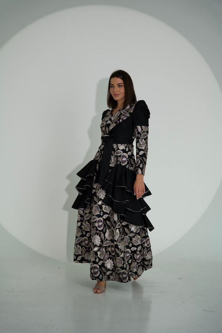 Printed Kaftan with Fancy Embroidery and Leather Touch Design