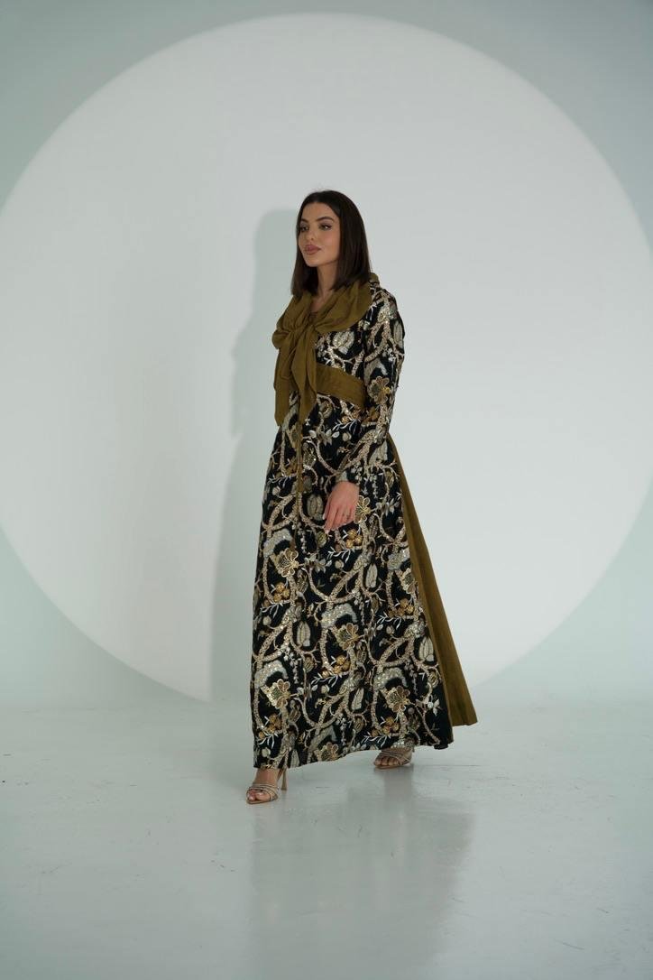 HomeLatest Collections Embrace luxury in our chic designer kaftan, crafted from silky pane shamuaa with exquisite embroidery.