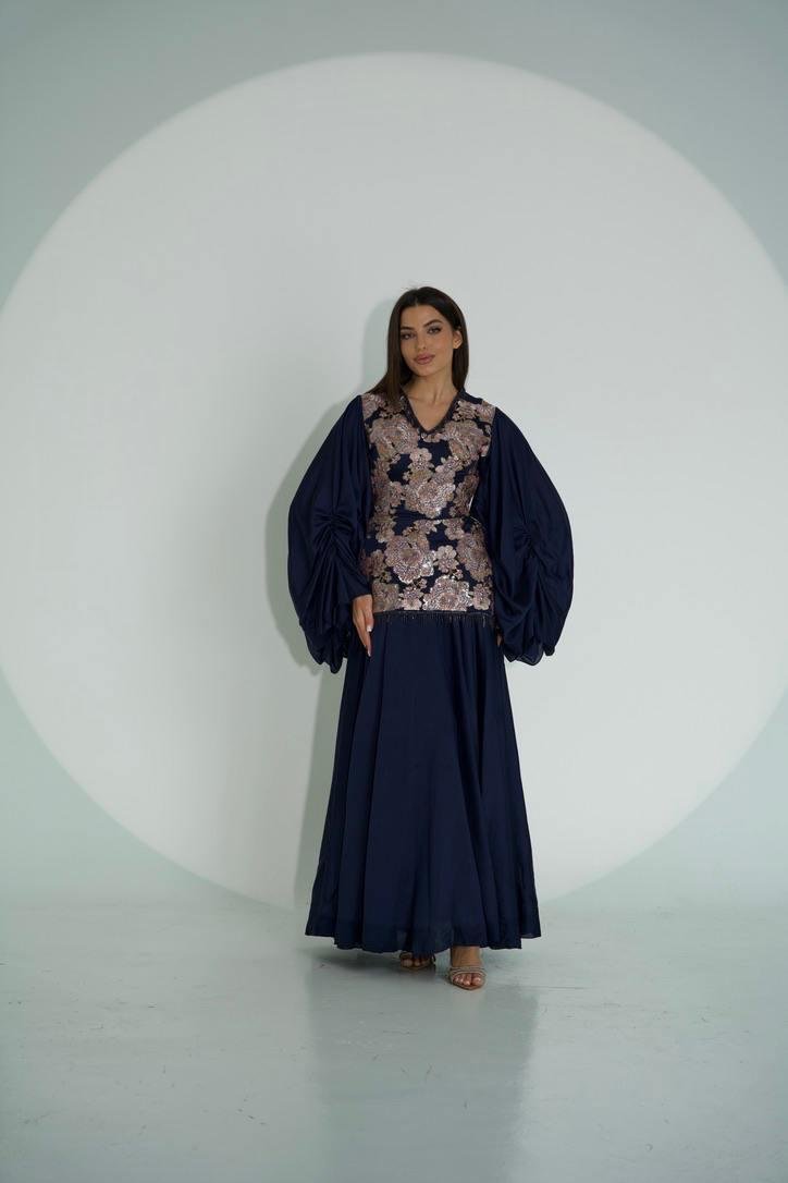Fancy embroidered fabric with double closure and designed sleeves 85.0 د.ك