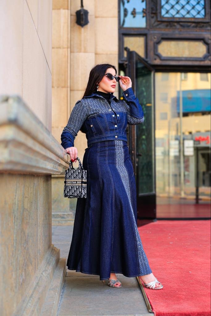 Elevate your style in this designer dress featuring a striking Blue color.