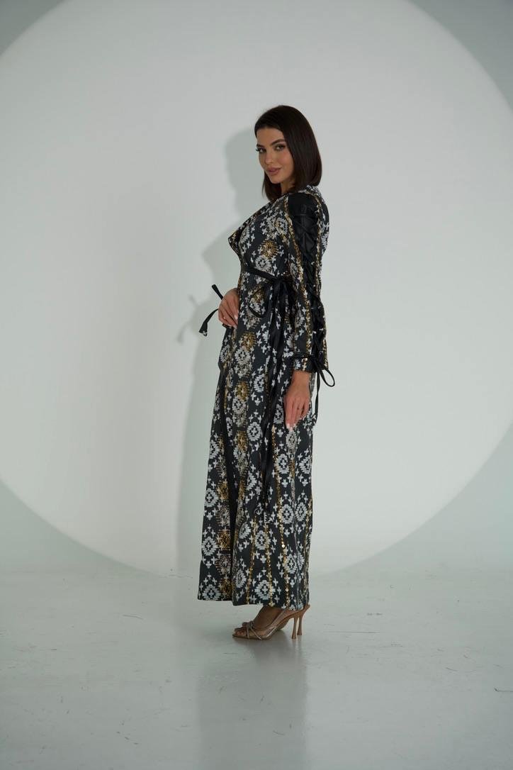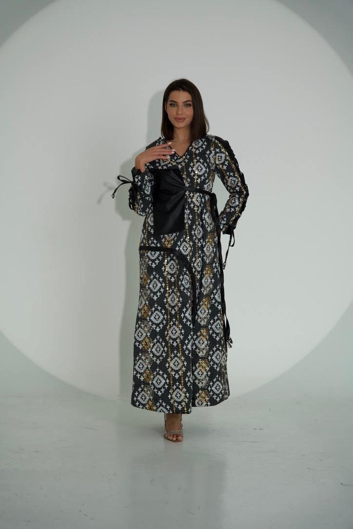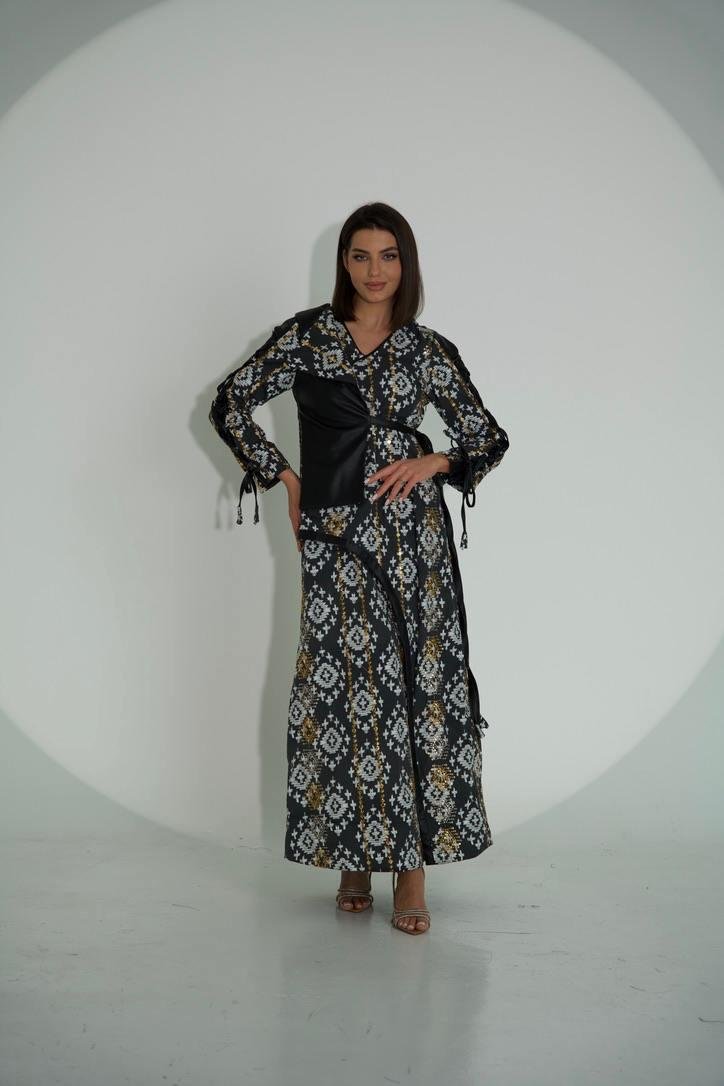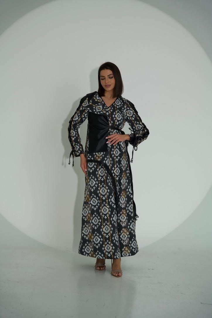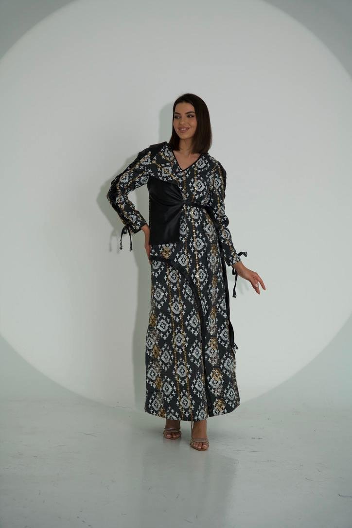 Printed Kaftan with Fancy Embroidery and Leather Touch Design