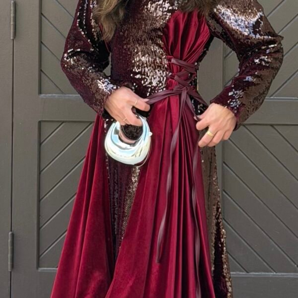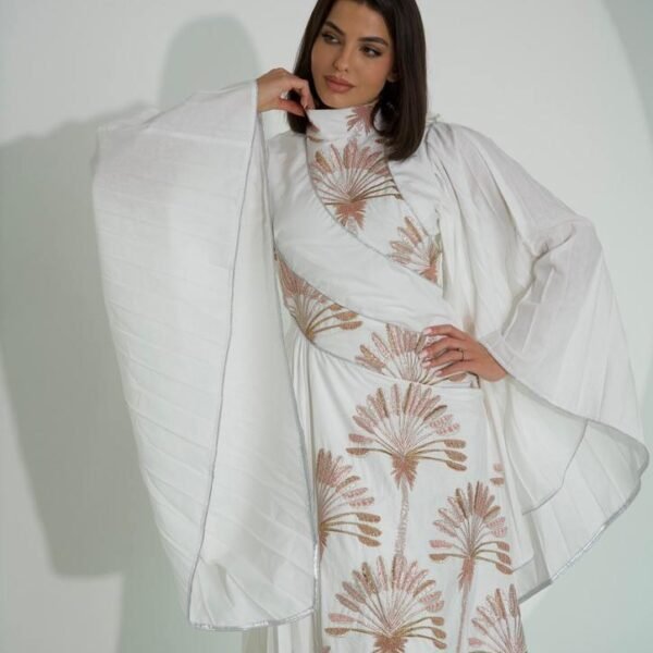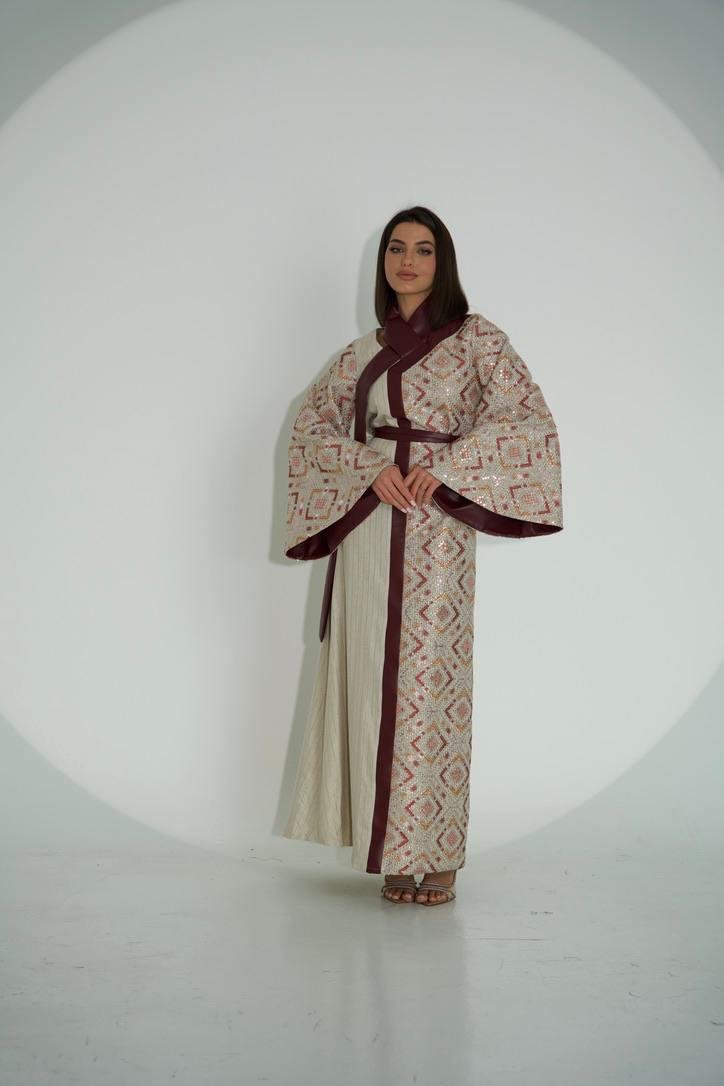 Hand-embroidered Lenon Baije Dress paired with Bist Maskook Toor