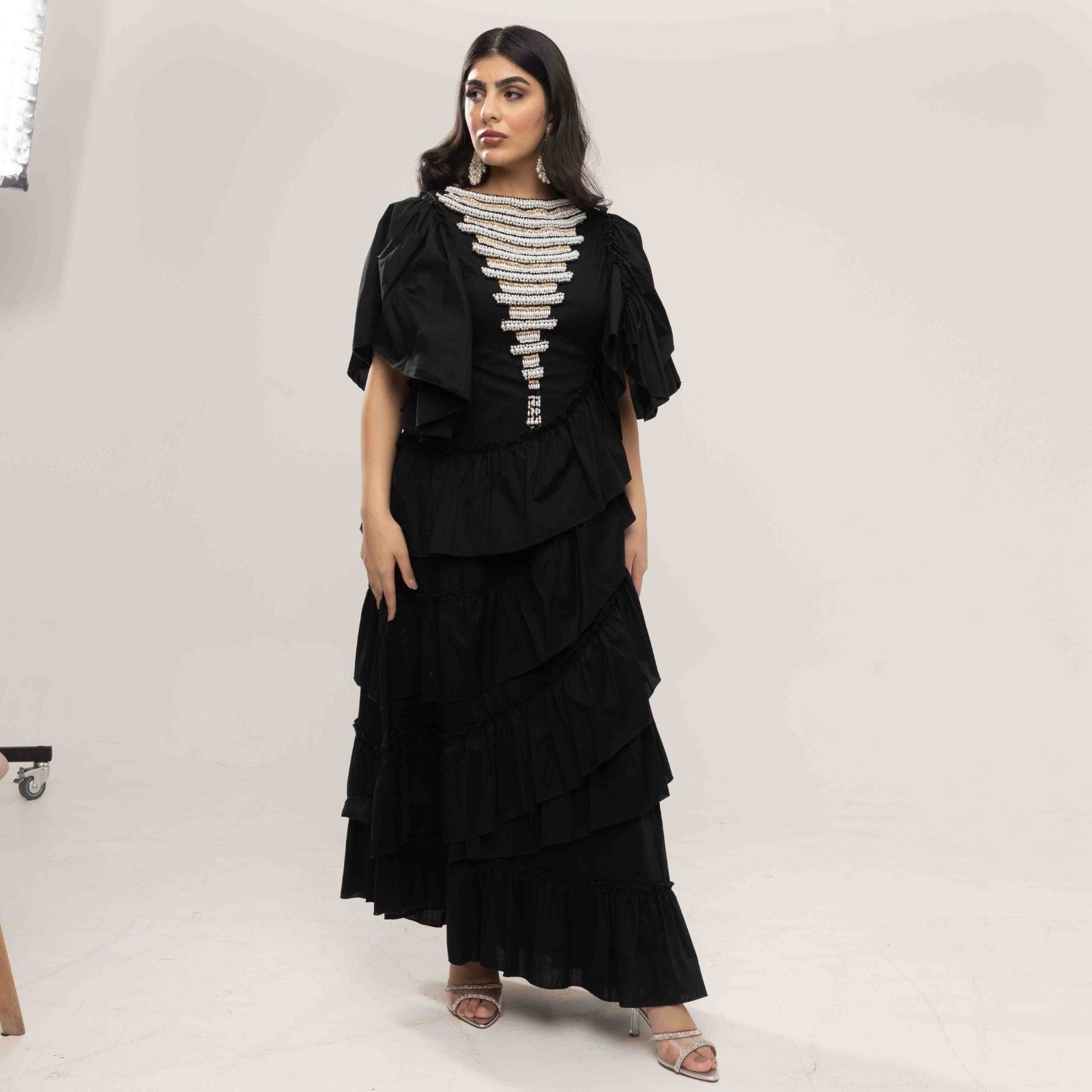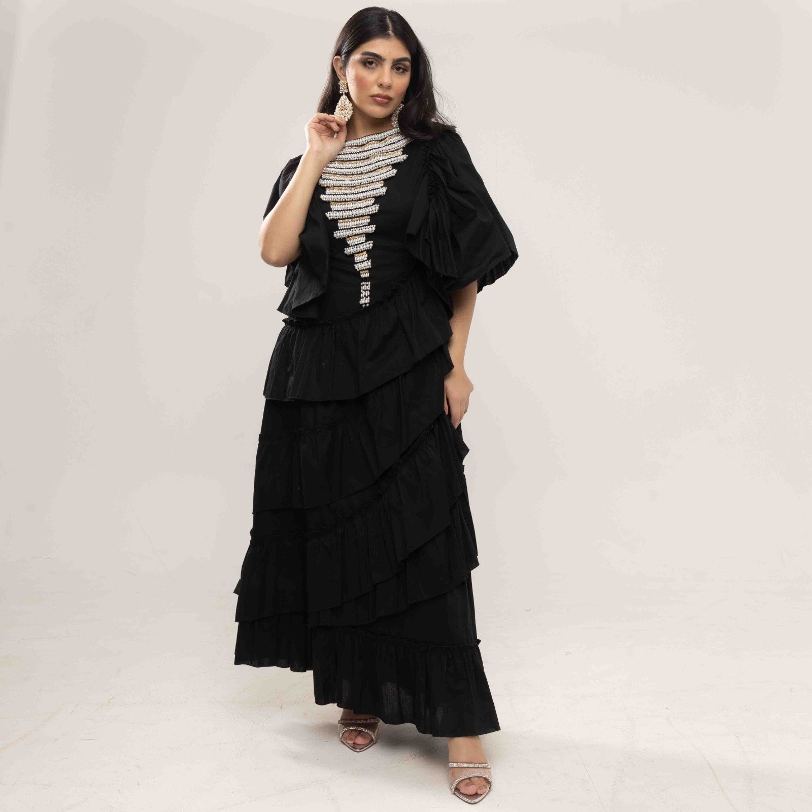 Elevate your style with our hand-embroidered Black Kaftan, crafted from luxurious Lennon Cloth. Perfect for adding a touch of elegance to any occasion.